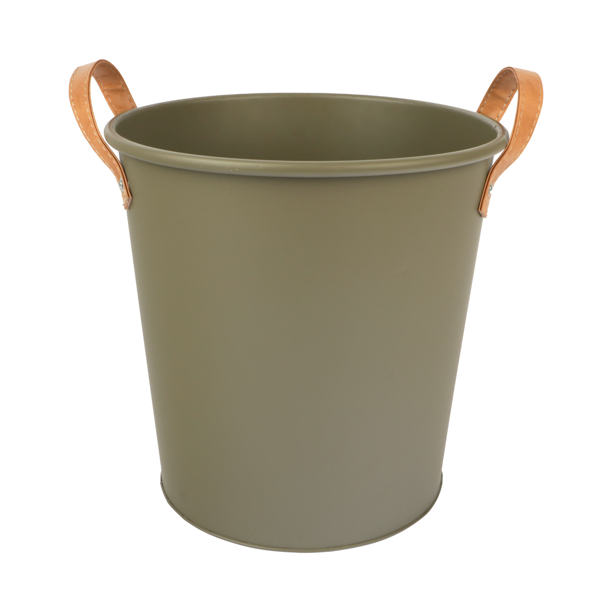 Metalen emmer 30/23x30 cm legergroen met grepen