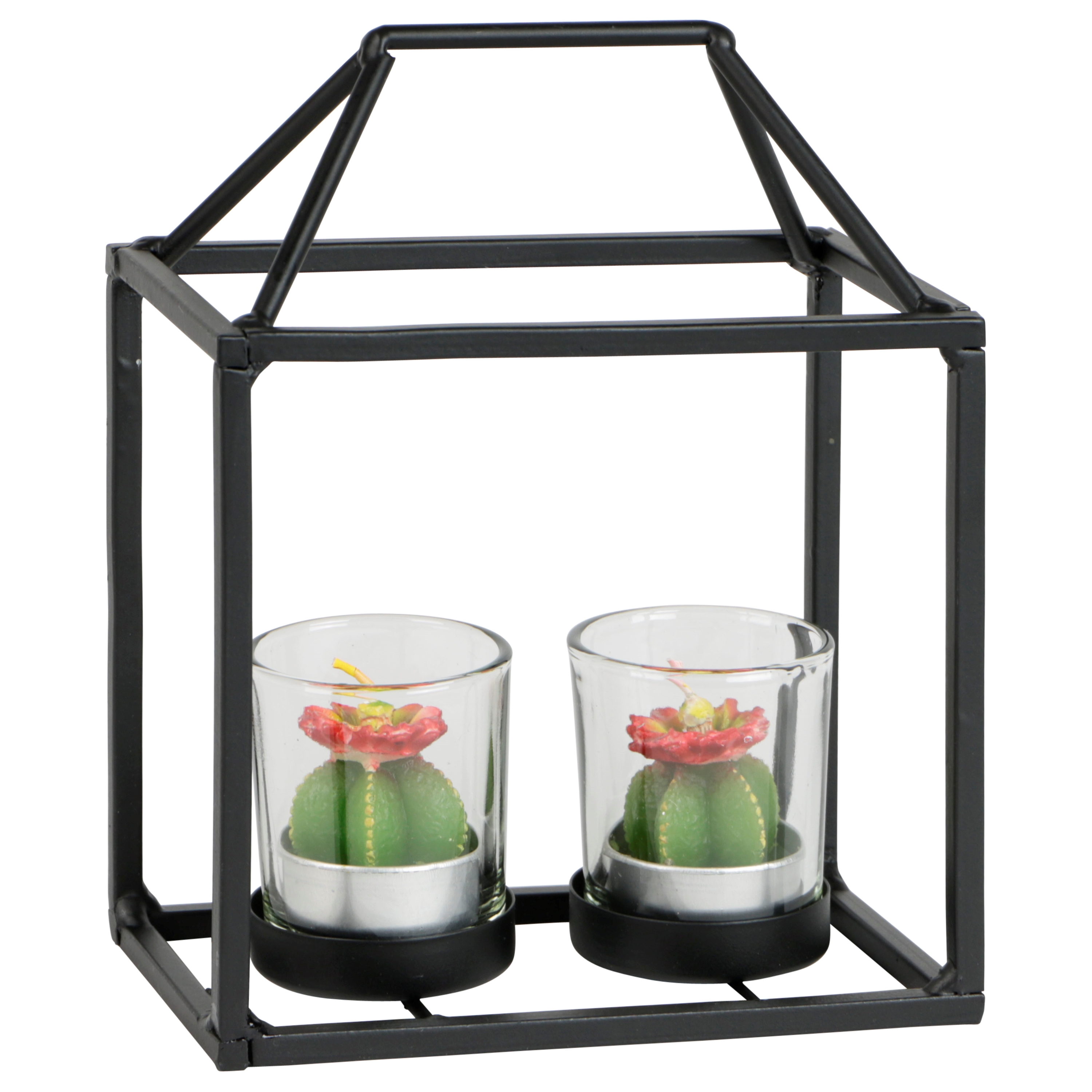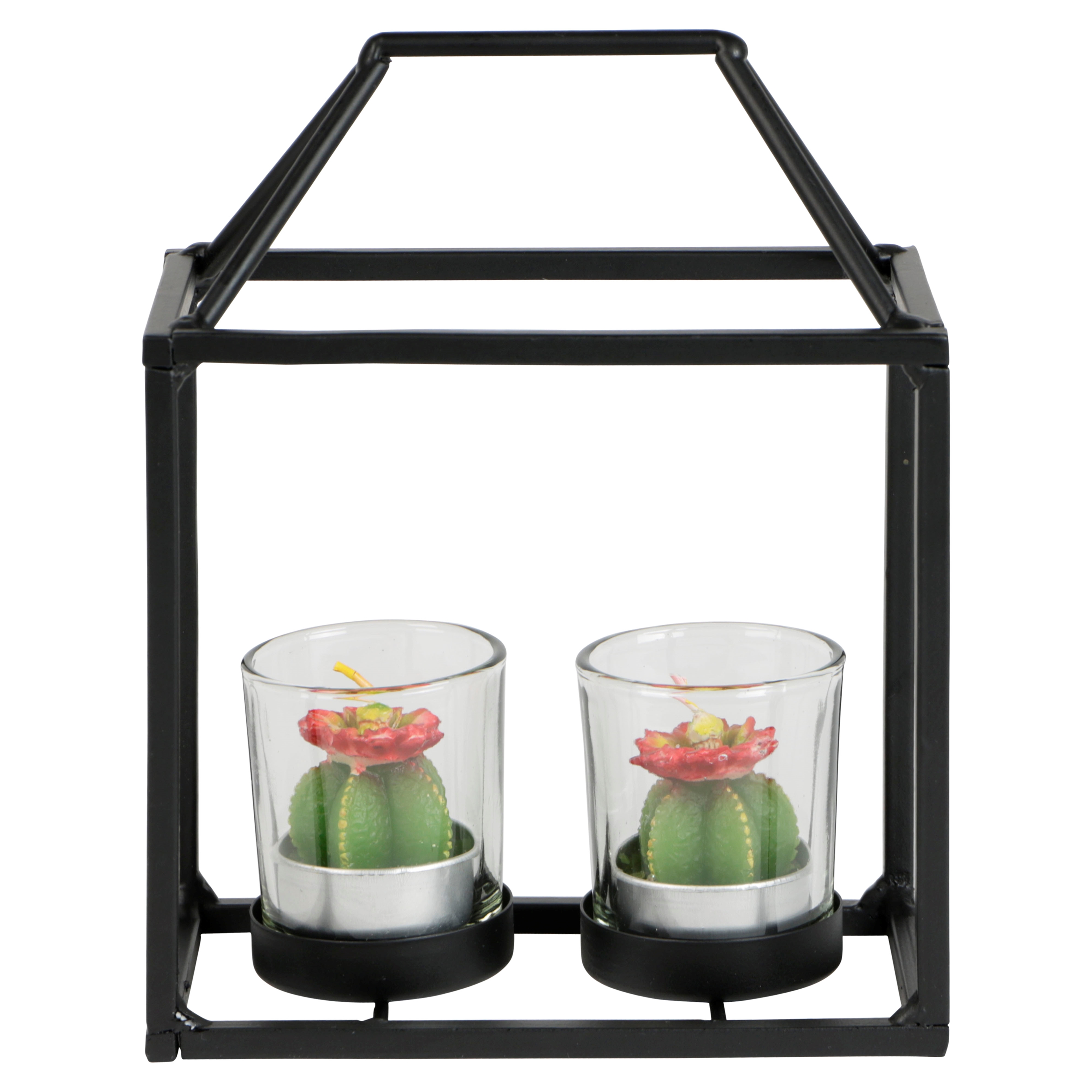 Metalen huisje voor 2 theelichtjes 15x9x20 cm zwart
