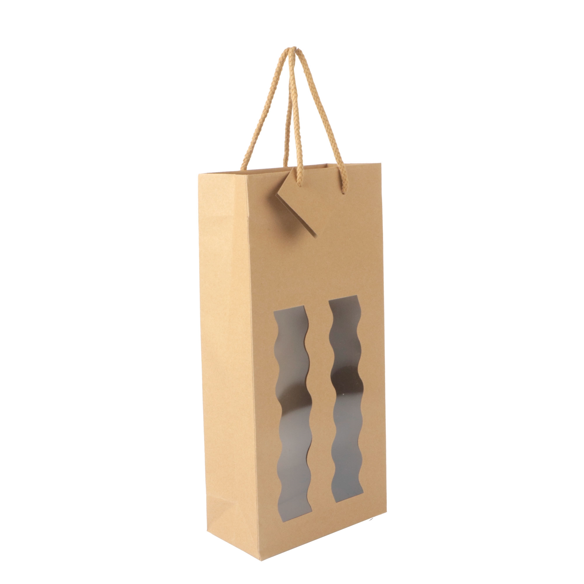 Picture of Pak à 20 1 fles draagtas bruin kraft met golvend venster € 16.36