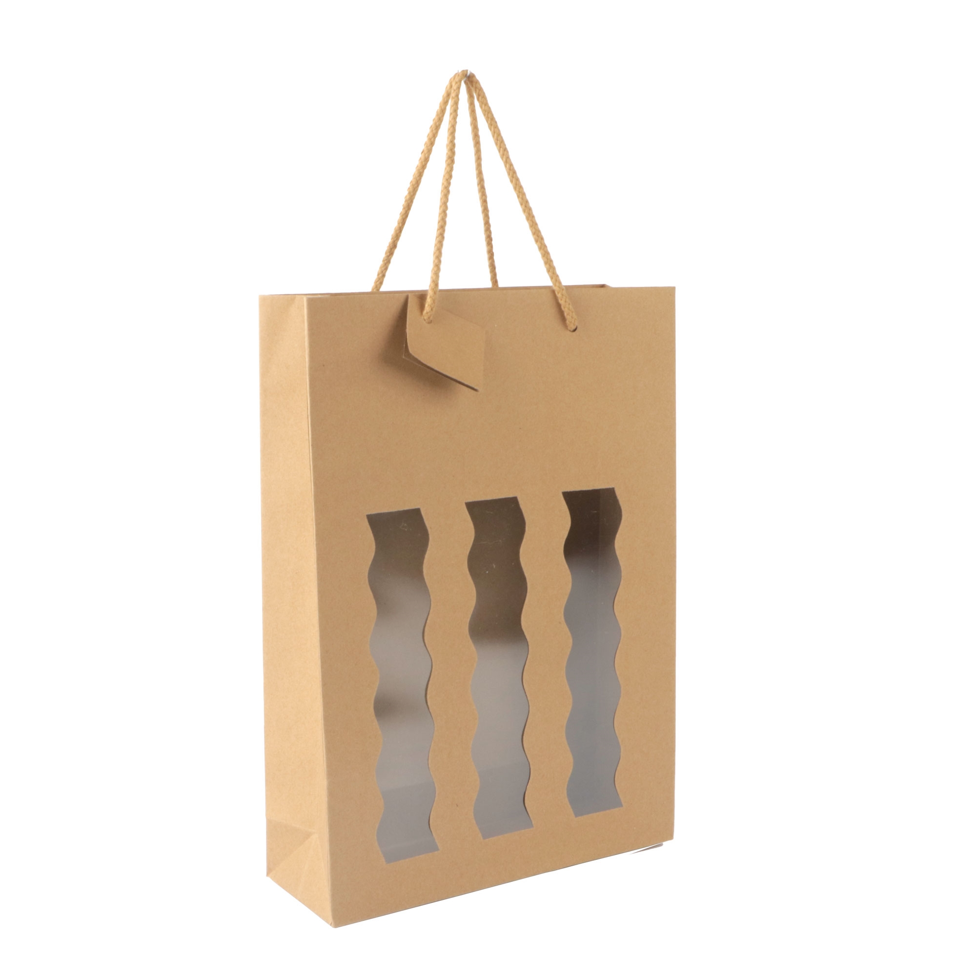 Pak à 10 3 fles draagtas bruin kraft met golvend venster