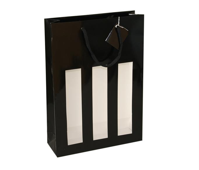 Pak à 10 3 fles draagtas glans zwart met venster (uc)