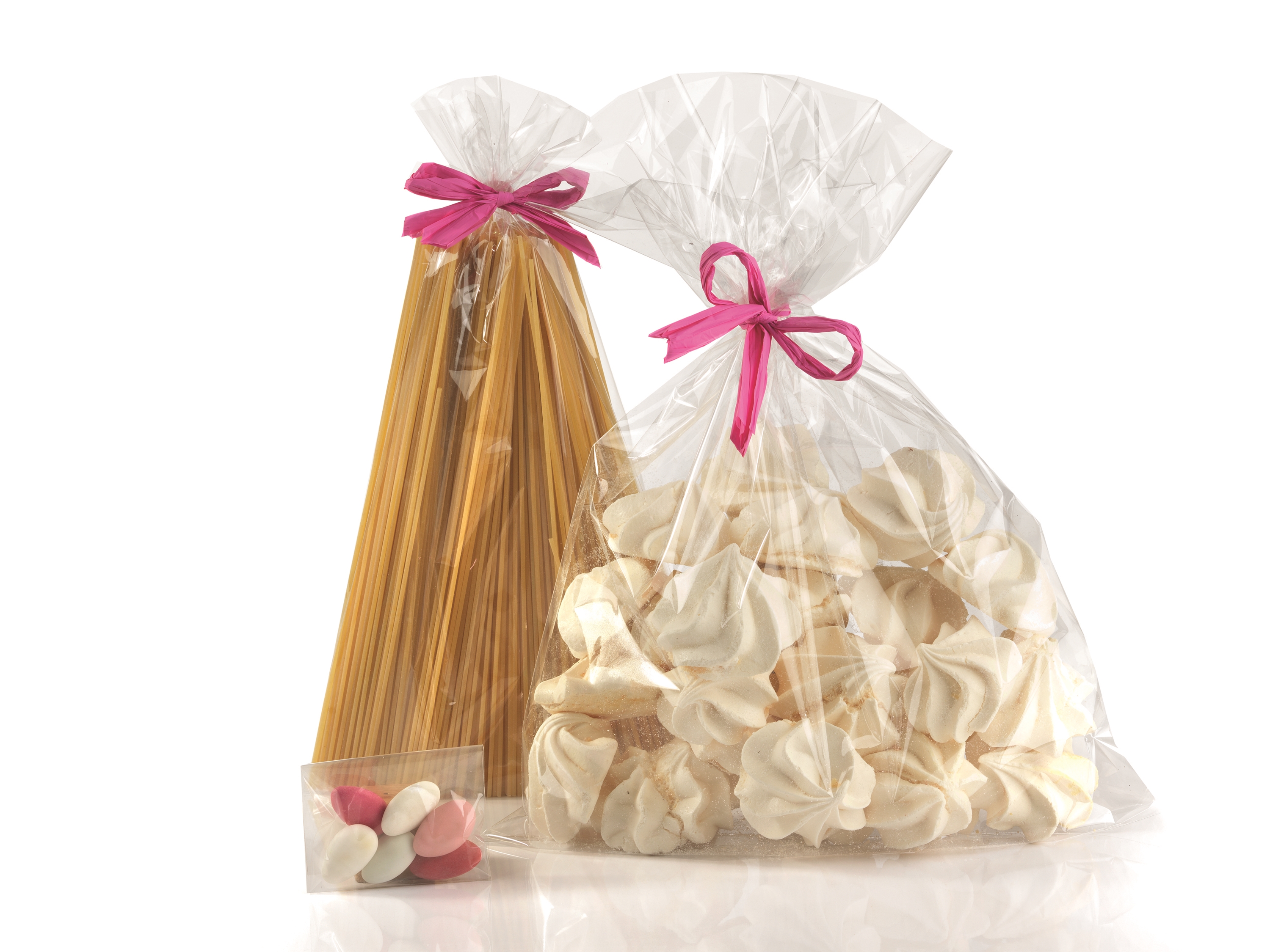 We hebben twee maten glasheldere zakken die uitermate geschikt zijn voor het snel en makkelijk verpakken van pakketjes. Bakje opmaken, in de zak schuiven, even de twee hoeken met een plakbandje naar achteren en klaar bent u! En voorzien van een strik natuurlijk nog mooier!