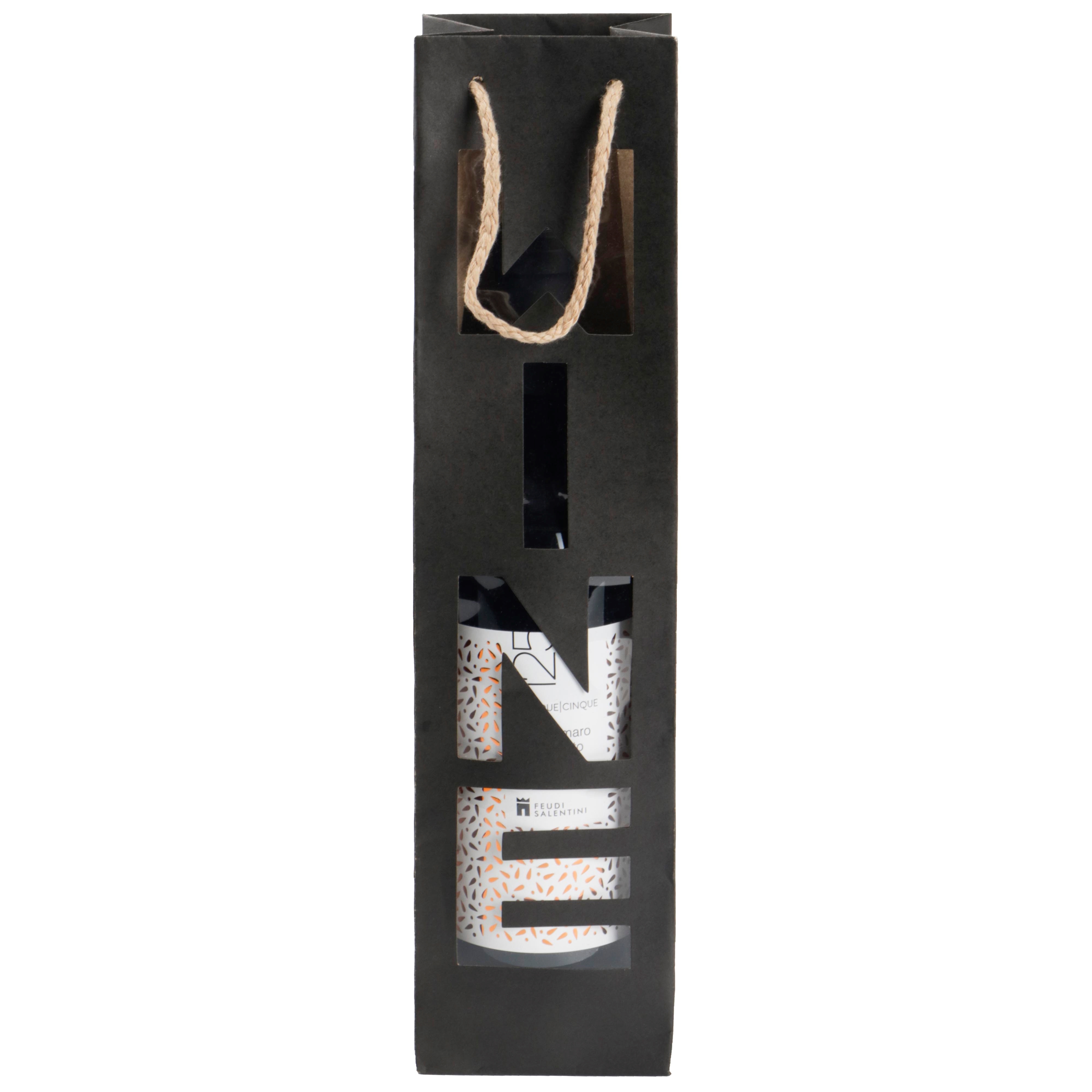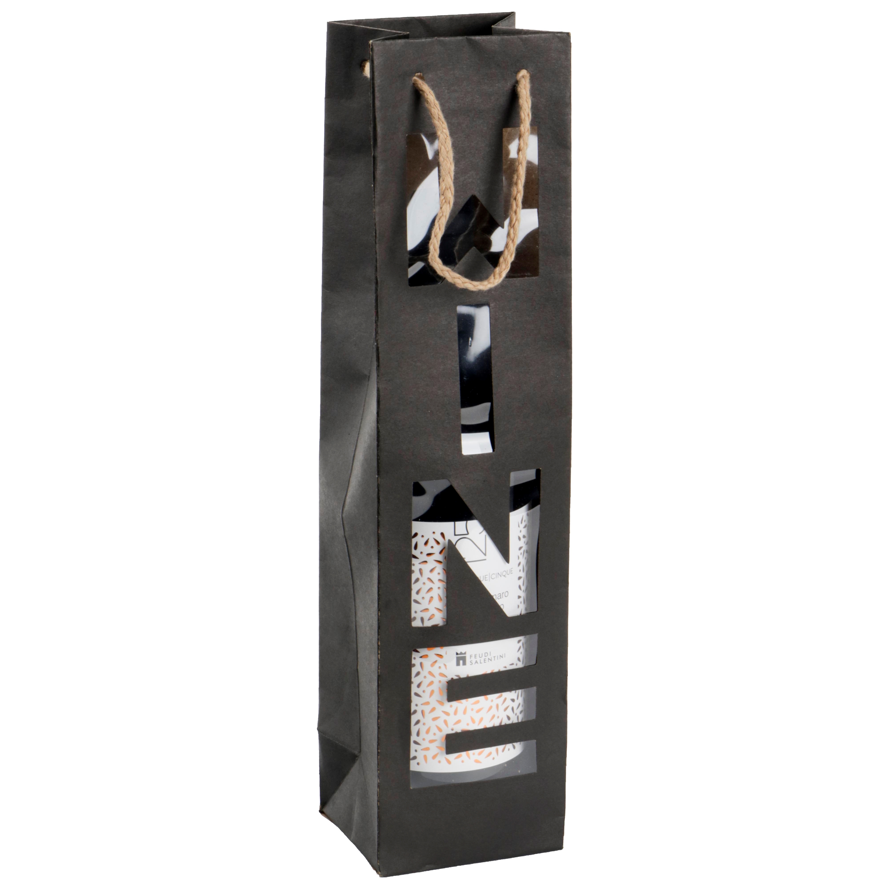 Pak à 12 1 fles draagtas zwart kraft met venster WINE