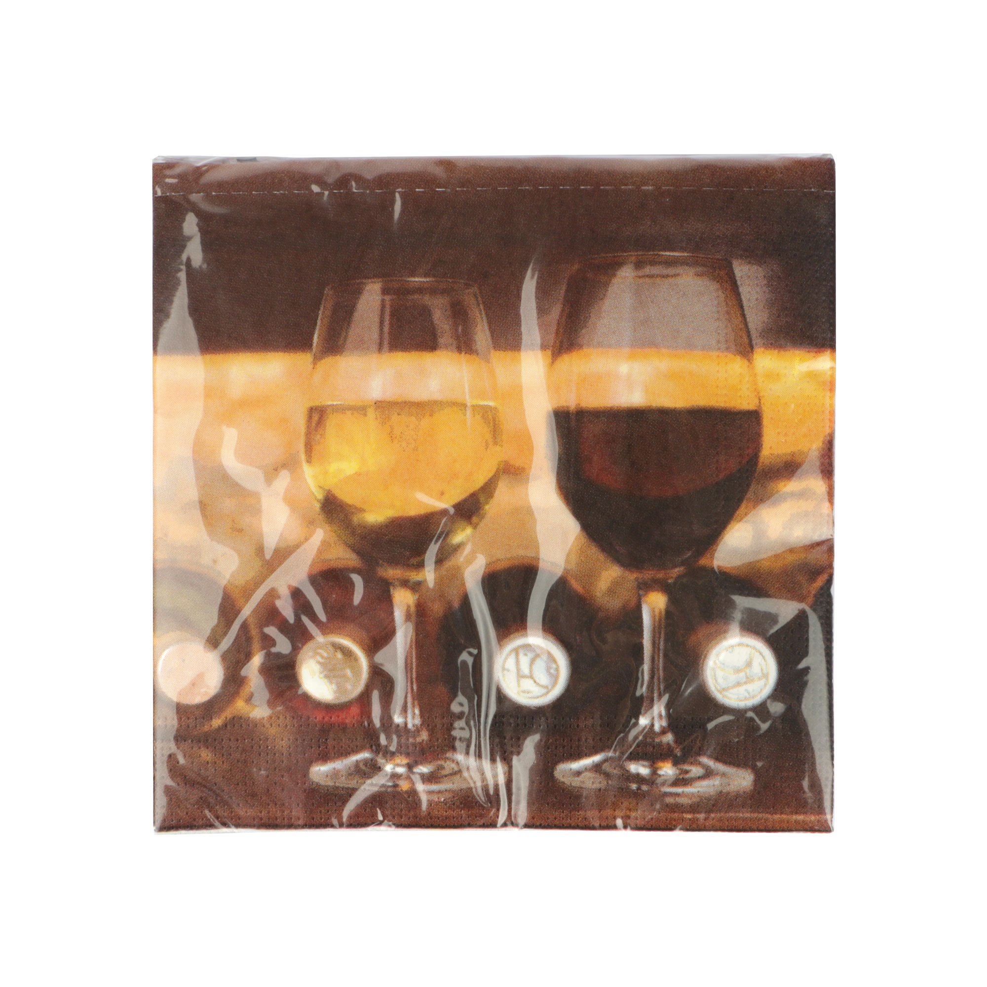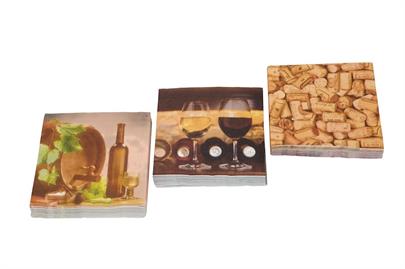 De sfeervolle wijnservetten zijn bedrukt met drie verschillende wijndessins en worden assorti geleverd.