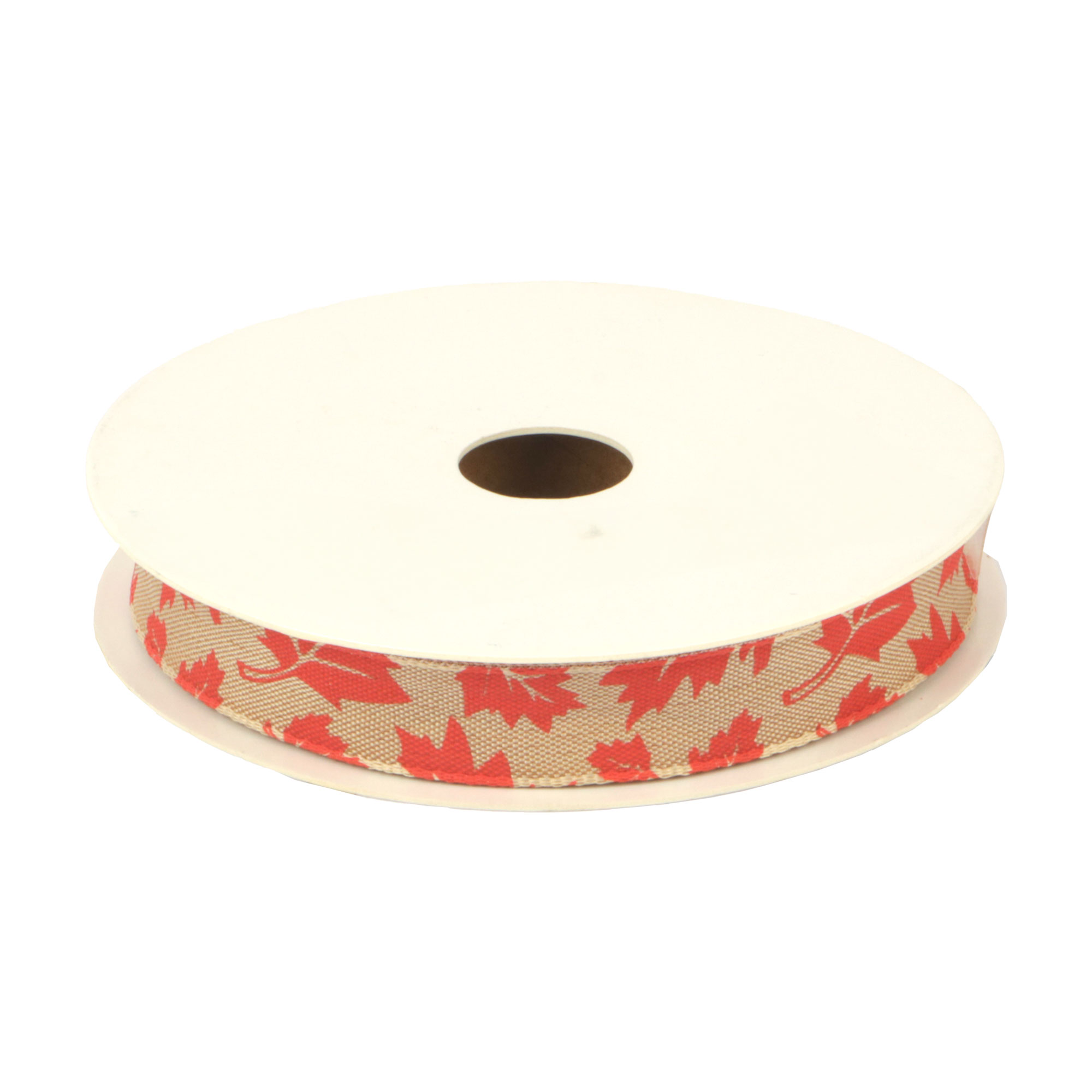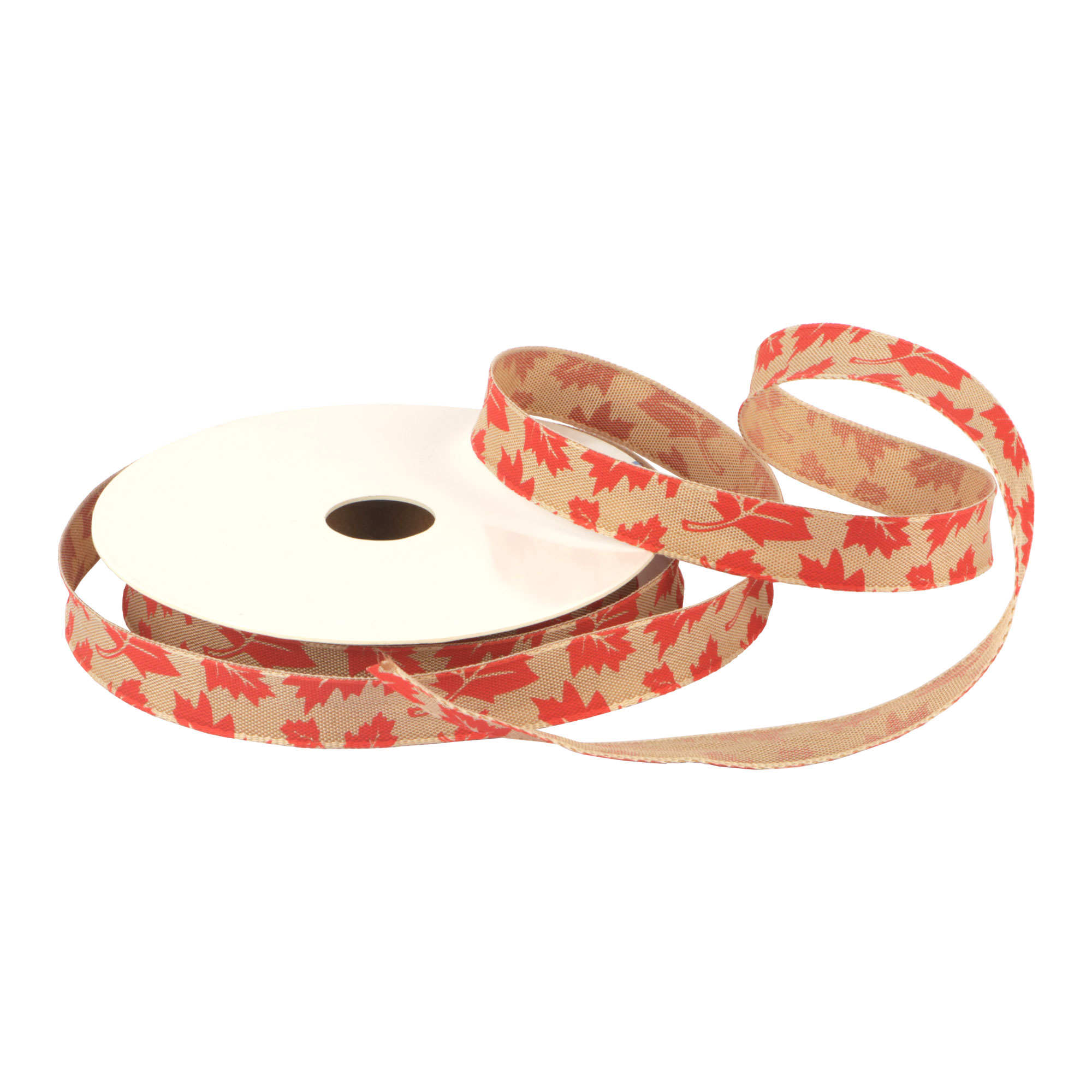 Rol jute lint 15 mm 15 mtr herfstbladeren oranje