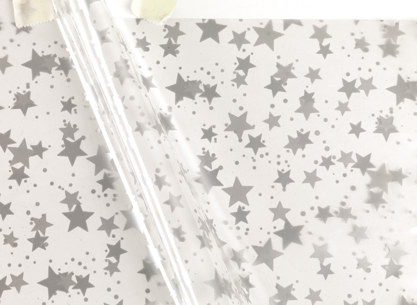 Rol Kerstfolie 70 cm 100 mtr 30 my sterren zilver
