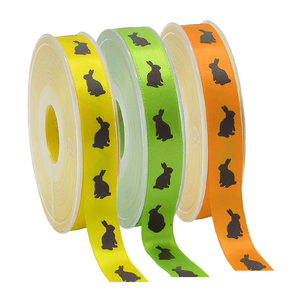 Rol satijnlint 15 mm 25 mtr Bunny lente oranje/bruin