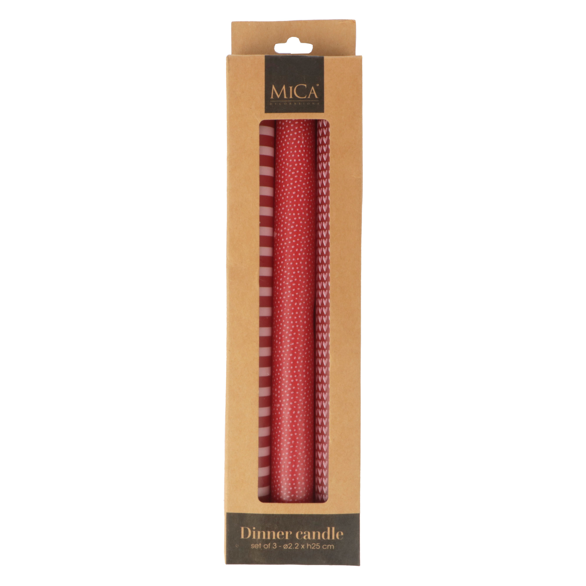 Set à 3 dinerkaars 2,2x25 cm rood assorti