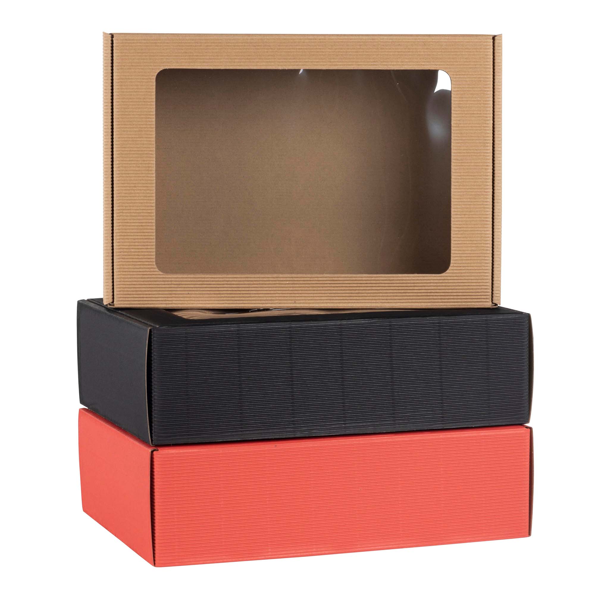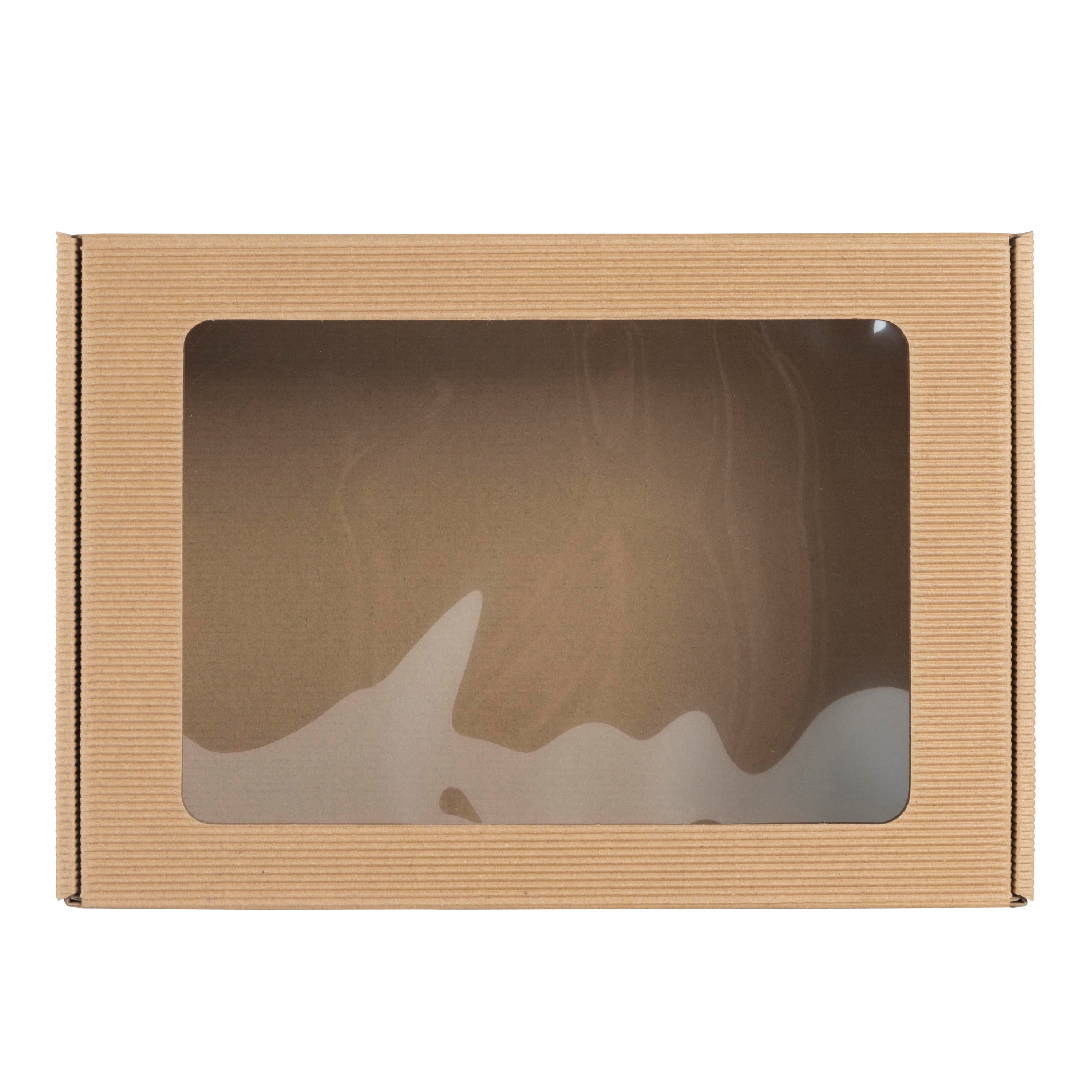 Shrink Pack of 10 window boxes 29x33.5x9 cm open corrugated kraft paper