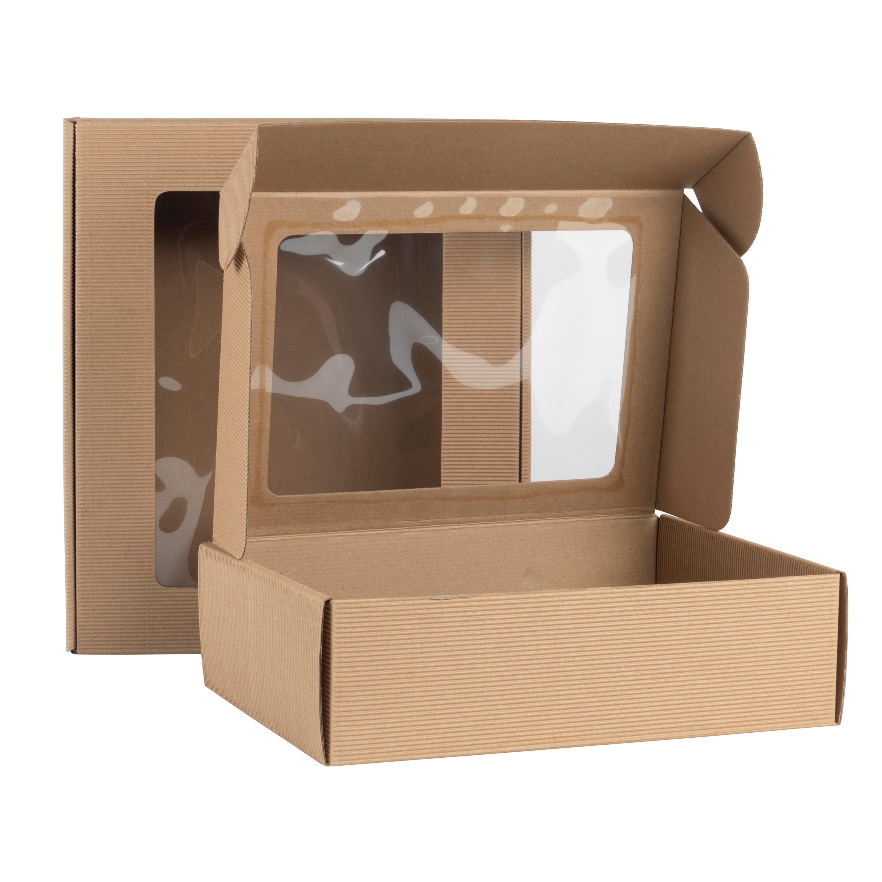 Shrink pack à 10 window boxes 30.5x21x8.5 cm open corrugated kraft paper