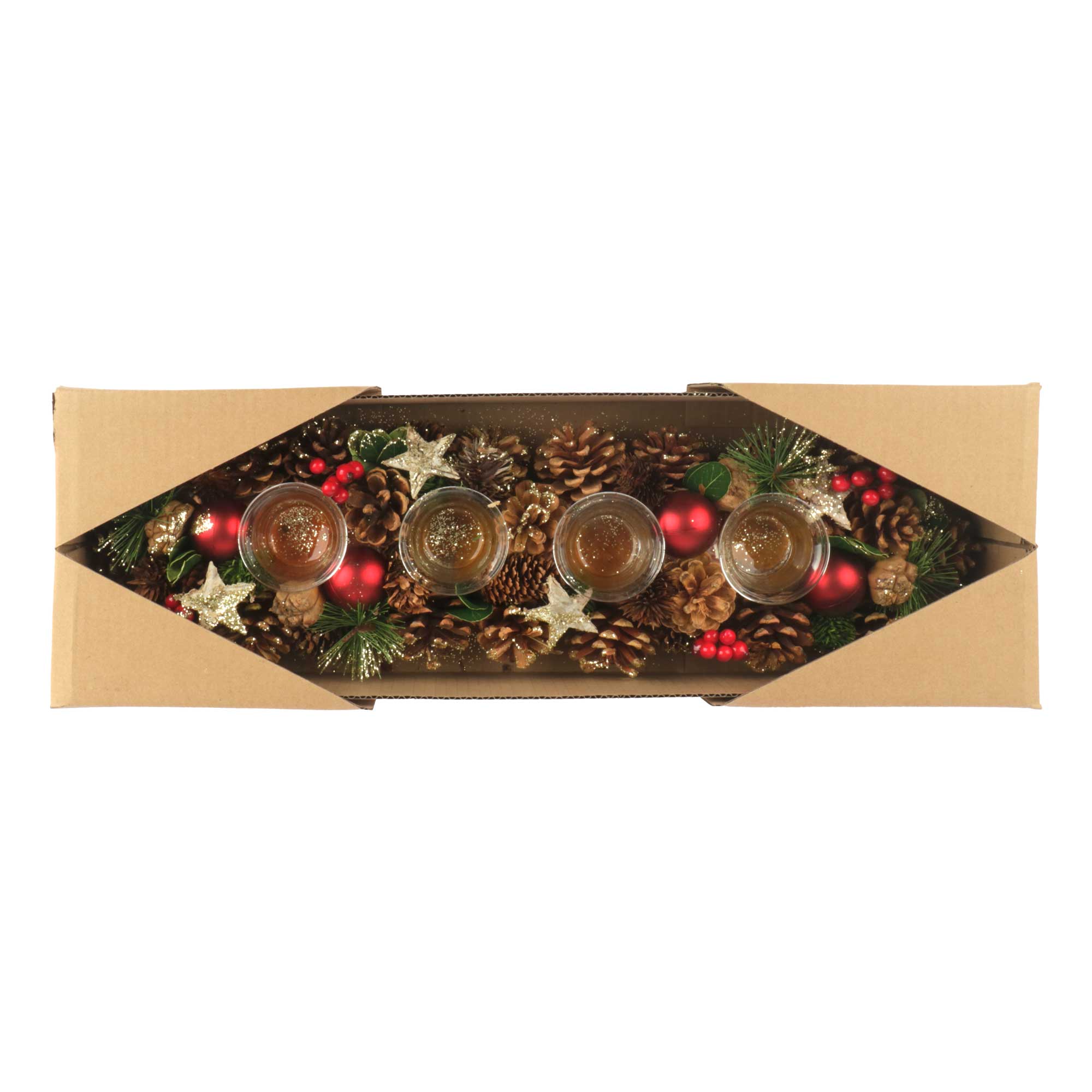 Tafelstuk kerst met 4 waxinelichthouders en decoratie