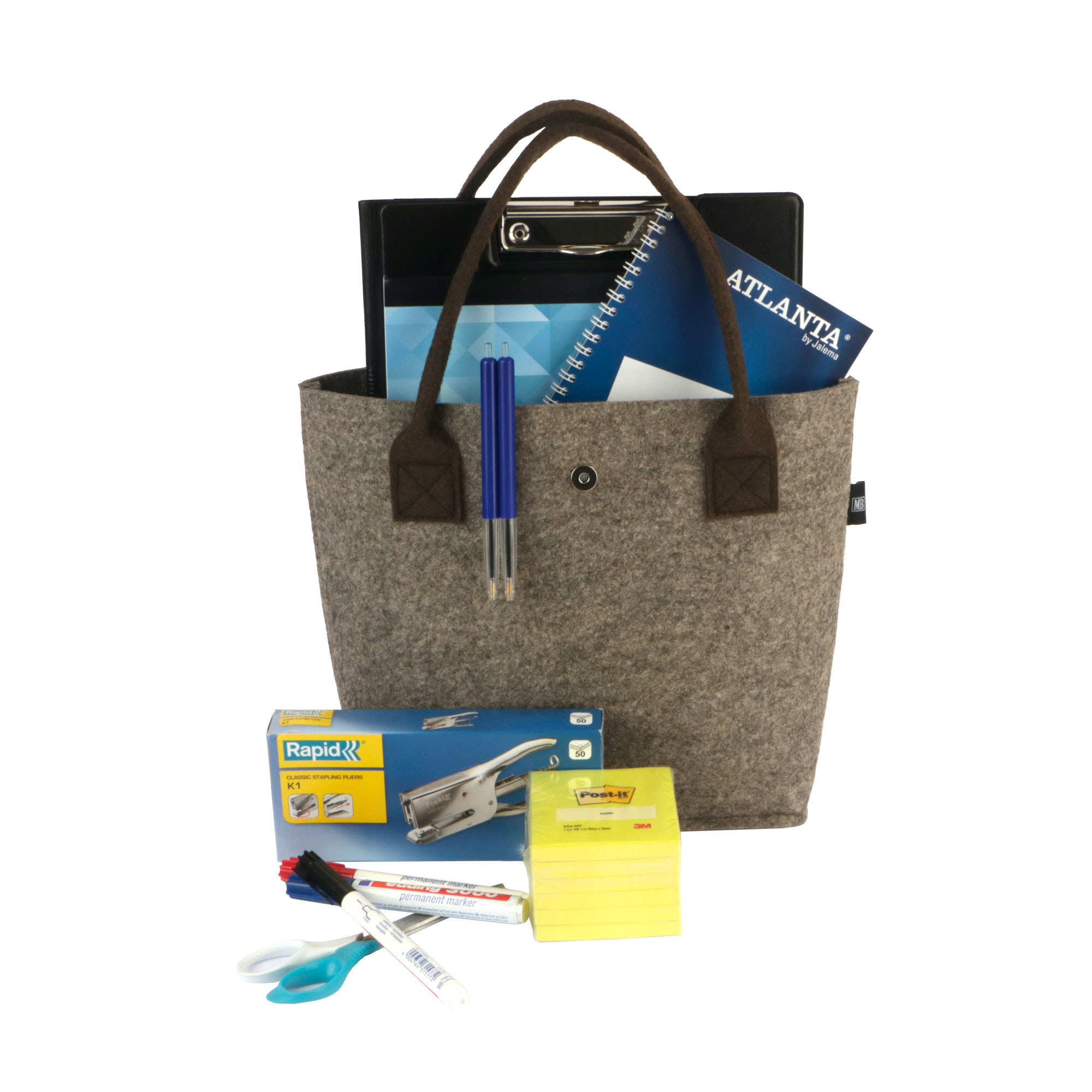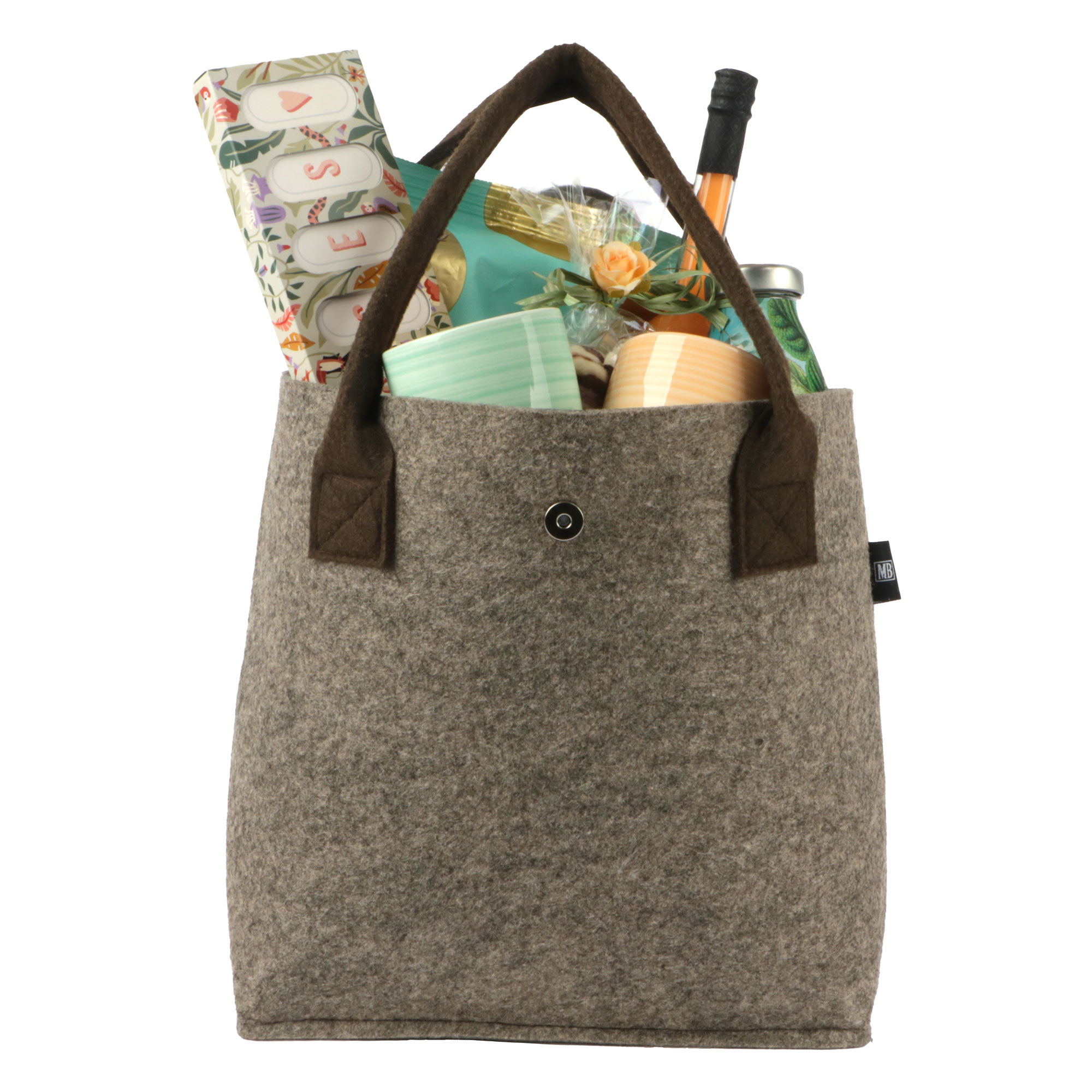 Vilten tas 32,5+9x26 cm beige/bruin met magneetsluiting
