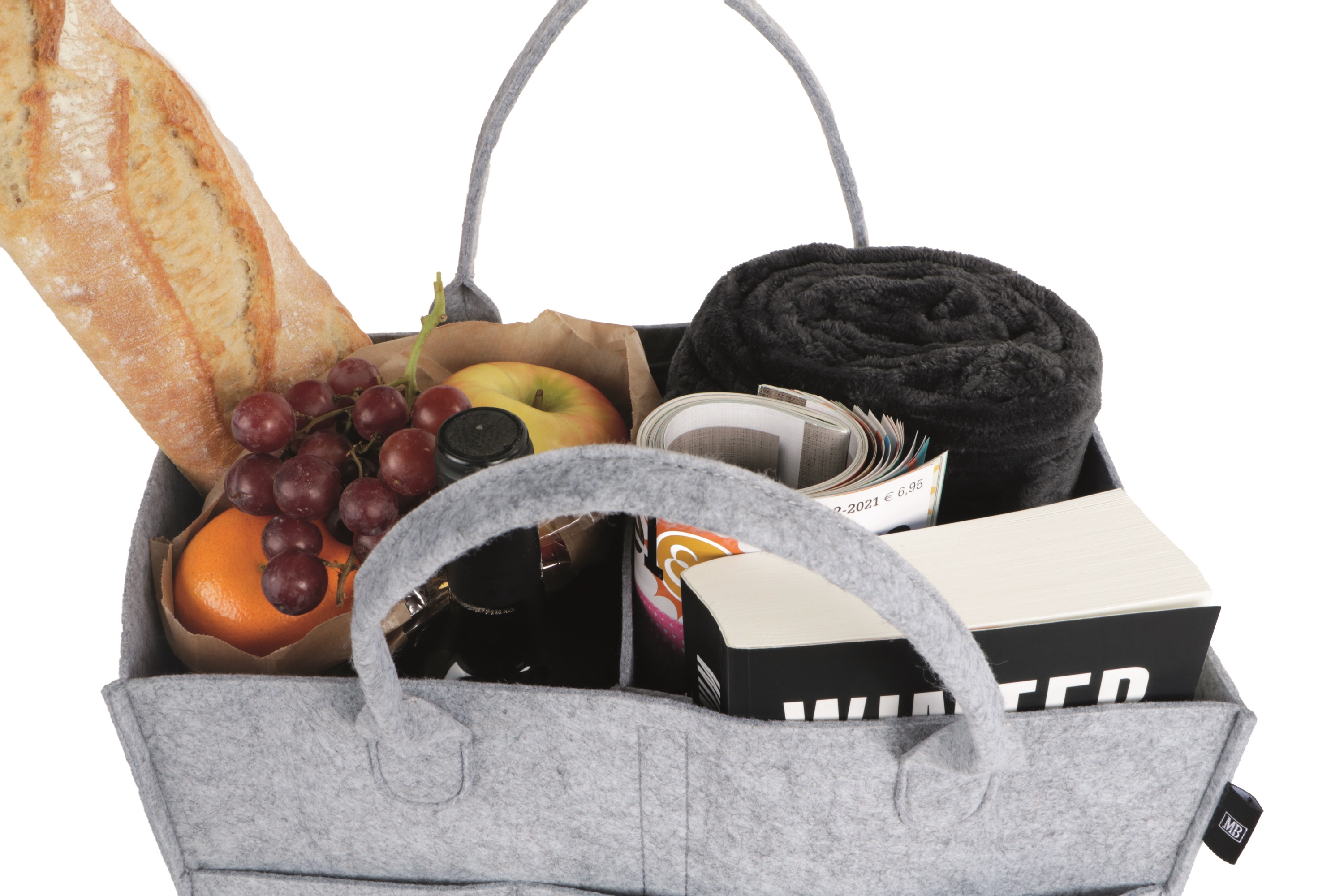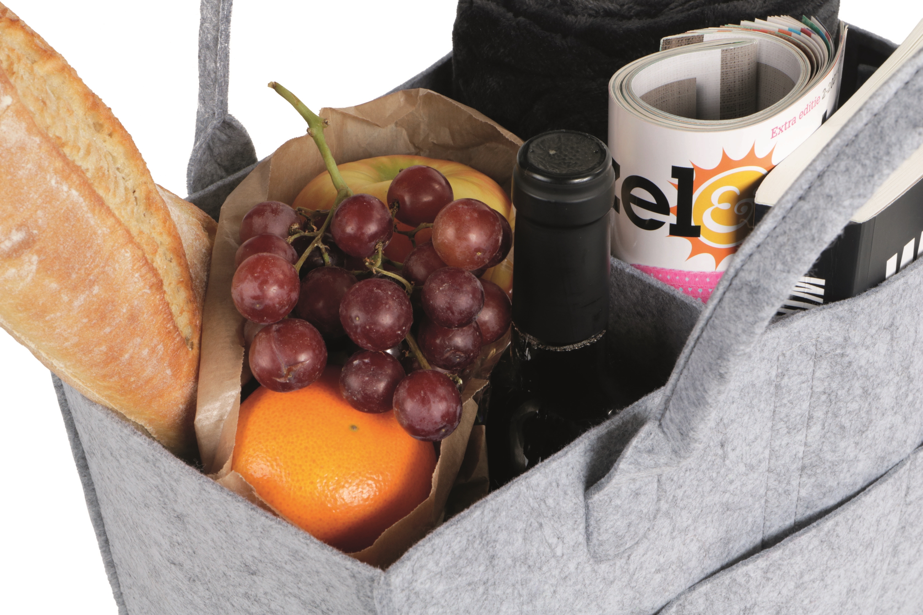 Deze vilten tas is een handige tas met vakken waar lekker veel in past. Leuk als basis voor een pakket gevuld met uw producten.