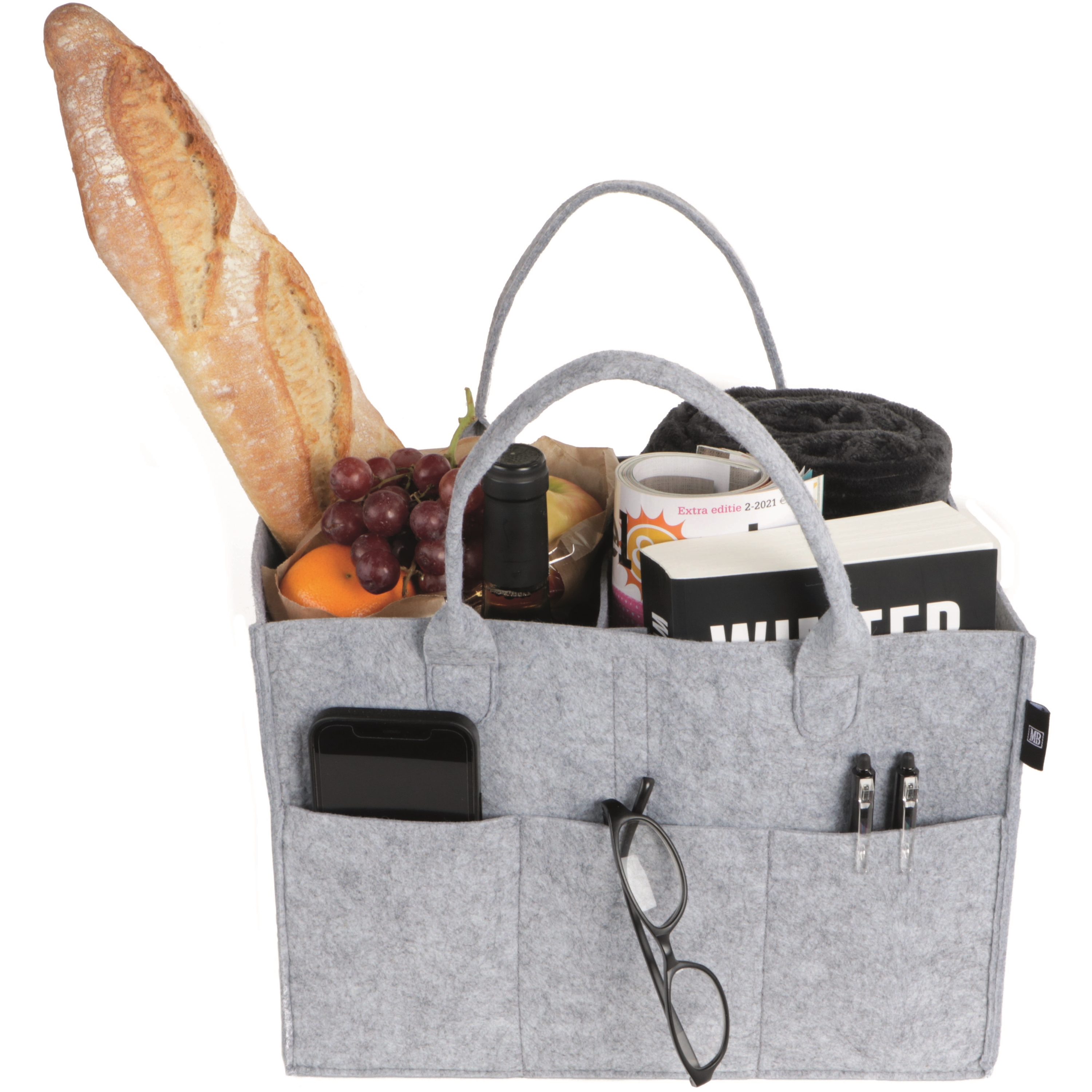 Vilten tas 34+18x24 cm licht grijs met vakken