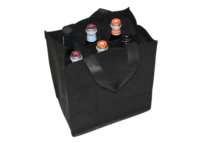 Zwarte non woven tas 27+18x30 cm voor 6 flessen